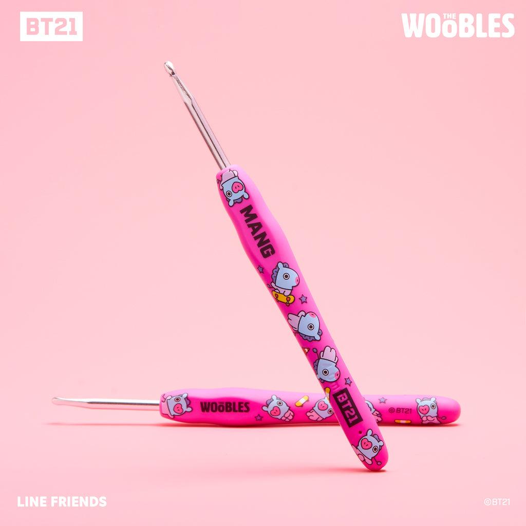 This Beginner+/Intermediate kit will teach you the double crochet and half double crochet stitches to make that heart-shaped nose, along with the surface slip stitch for the eyes. And even that dance-tastic mane is totally manageable, especially with The Woobles Easy Peasy Yarn™ and step-by-step videos. So turn on your favorite playlist and get ready to bust a move of your own as you bring mysterious MANG to life!